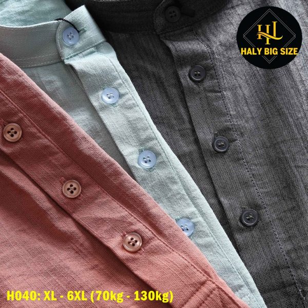 Áo sơ mi nam cổ trụ big size tay ngắn vải đũi [H040:70-130kg]