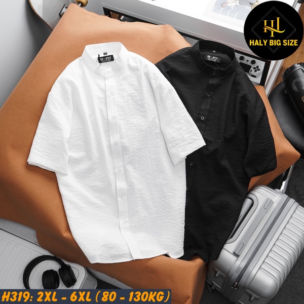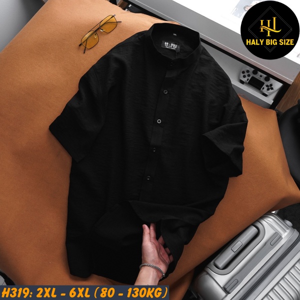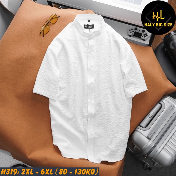 Hãy trải nghiệm sự lịch lãm và thoải mái cùng áo sơ mi nam big size tay ngắn cổ trụ cúc gài H319 từ Haly Big Size với vô vàng ưu đãi ngay hôm nay.